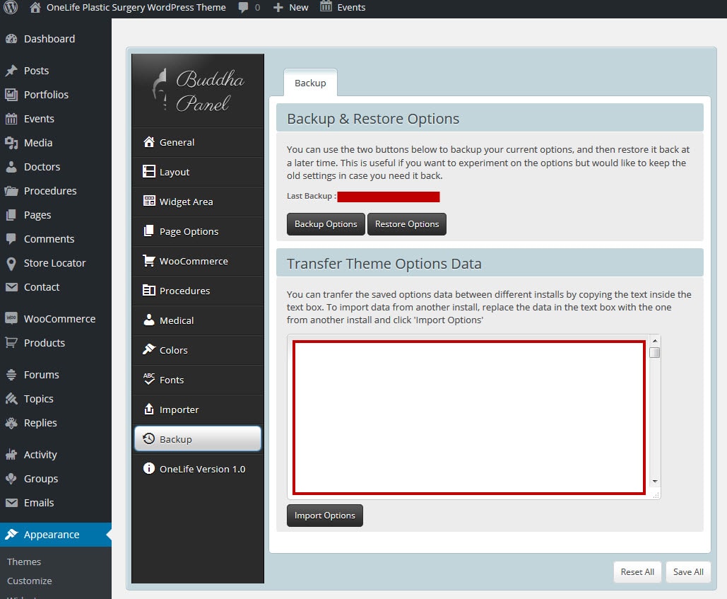 When you first install any WordPress theme, it will not contain all the extra content that you might have seen in the live (demo) site. There are two ways you can import the OneLife Demo Content; the entire demo with all the settings through our Theme Options Importer, or importing only individual pages. Usually you have to import an XML file, which can be troublesome. We've made it easier by creating a Theme Options Demo Content Importer.