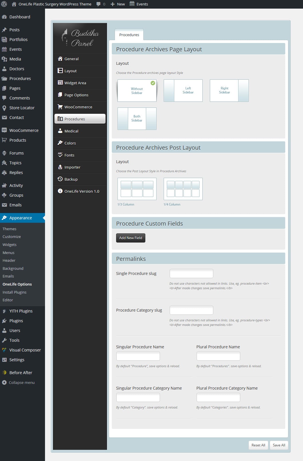 WordPress Admin Panel -> Procedure Options <